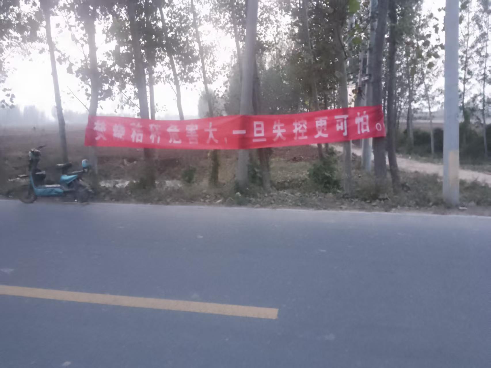 德州市天衢新区赵虎镇郭家庵村开展了一场志愿服务活动,为了天空更蓝空气更清新减少大气污染,张贴禁止焚烧秸秆的宣传条幅,发放宣传页,宣传秸秆焚烧的危改。