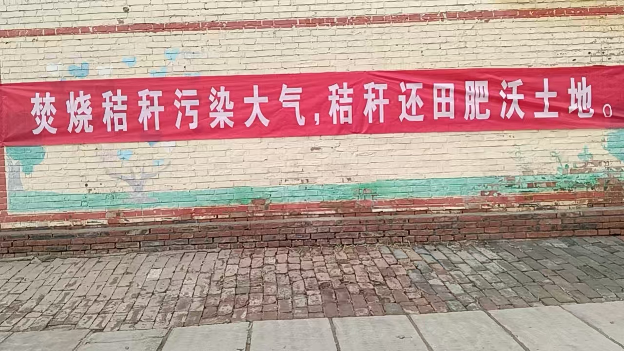 德州市天衢新区赵虎镇白王村开展了一场志愿服务活动,为了天空更蓝空气更清新减少大气污染,张贴禁止焚烧秸秆的宣传条幅,发放宣传页,宣传秸秆焚烧的危改。