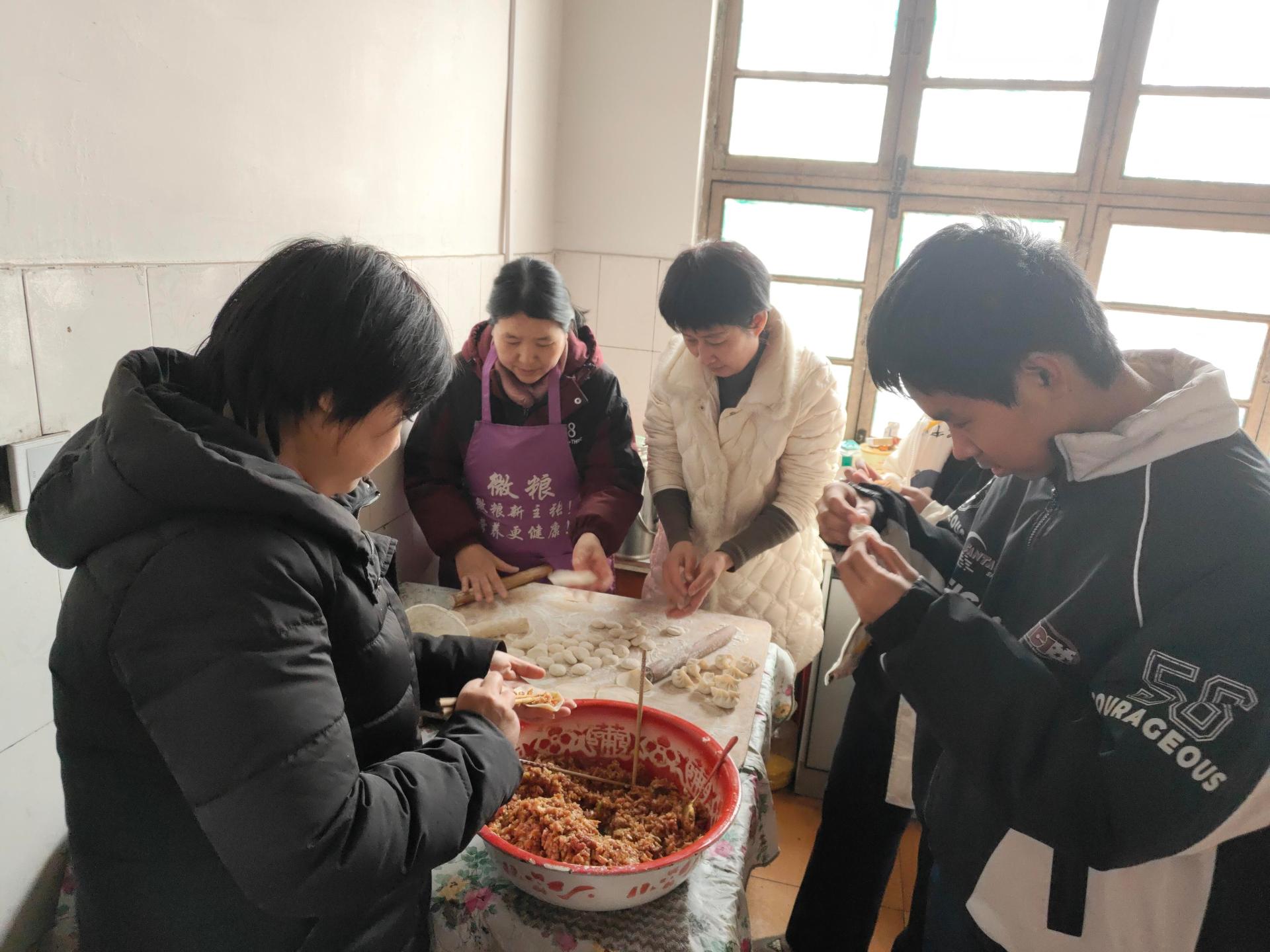 费县薛庄团队开展吃暖心饭活动,孩子今年上高一,两周回来一次,志愿者买好食材,和孩子一起做饭包水饺,让孩子养成爱动手的好习惯。