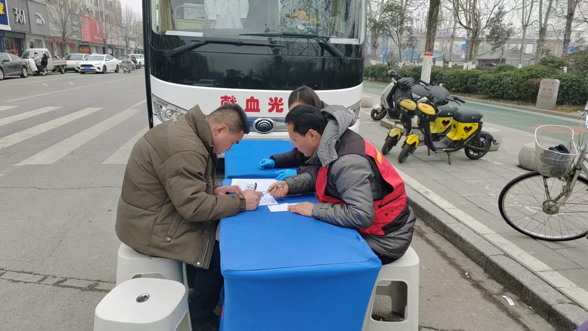 郓城县志愿者协会志愿者协助菏泽市中心血站工作人员一起为献血者填写资料讲解献血的好处及注意事项,帮助献血者看护交通工具、在拥挤的时候维持秩序