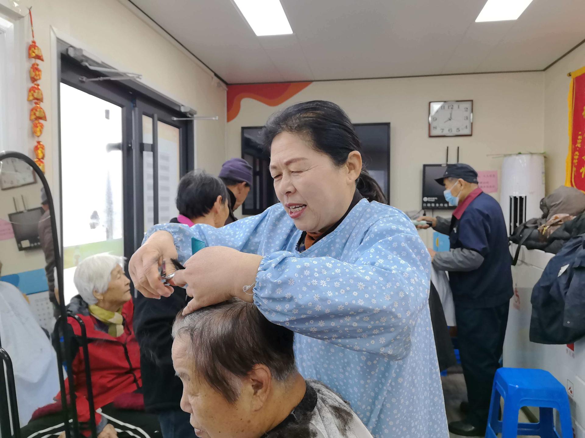 到东莱街道松园社区为老年居民义务理发,为老人送去温暖与关怀,践行孝德文化,传承中华美德,老吾老以及人之老。