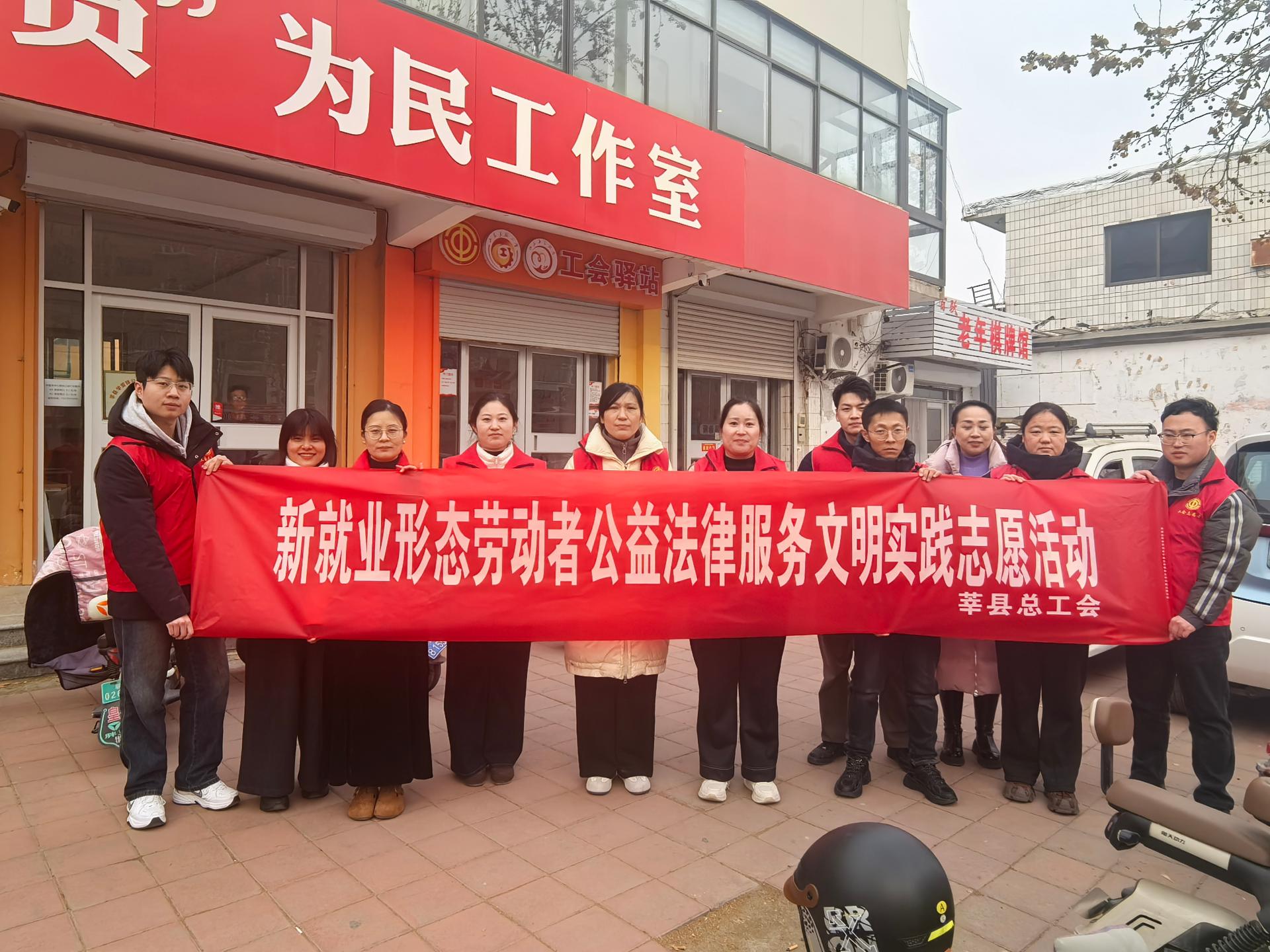2026年1月29日,莘县总工会组织广大志愿者开展新就业形态劳动者公益法律服务文明实践志愿服务活动。