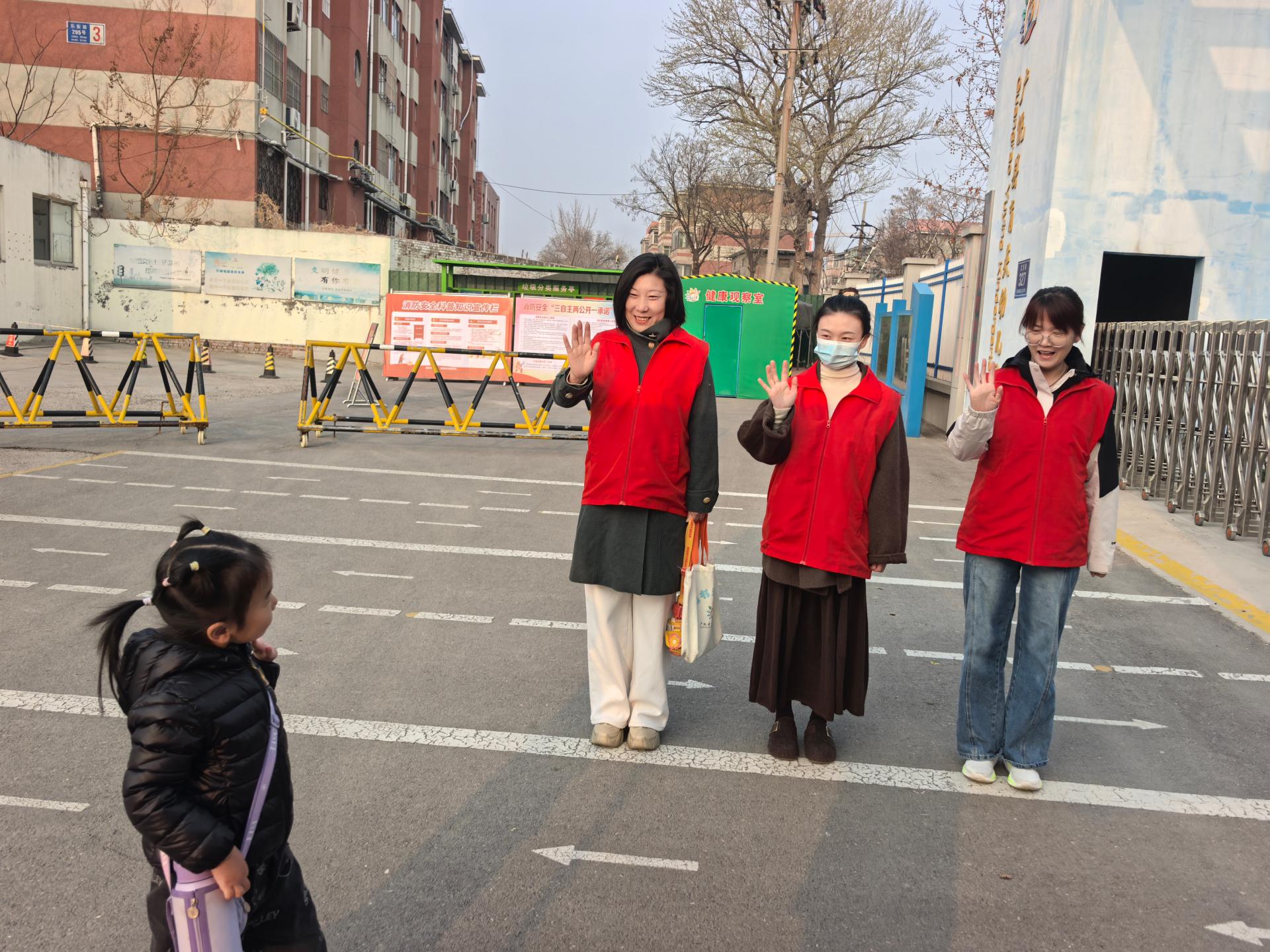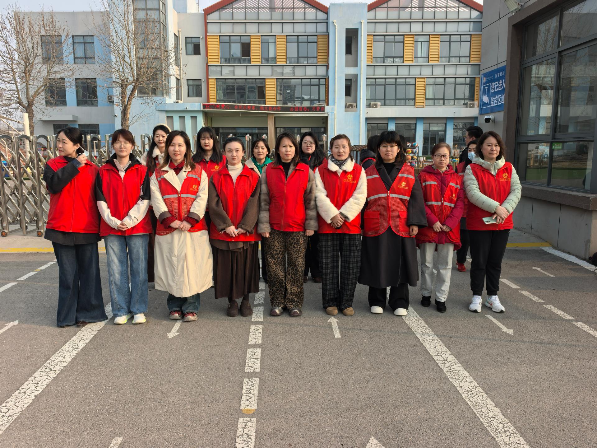 为保护孩子们的安全,广饶县育英幼儿园的领导带领值班教师每天早上都早早来到幼儿园门口执勤,看护孩子们上下学路队。他们站在幼儿园门口的值班点位上,化身安全监督员,提醒孩子们不扎堆、不拥挤、不乱跑,护佑着孩子们安全有序出入校门,进一步消除校园安全隐患,确保师生生命财产安全。