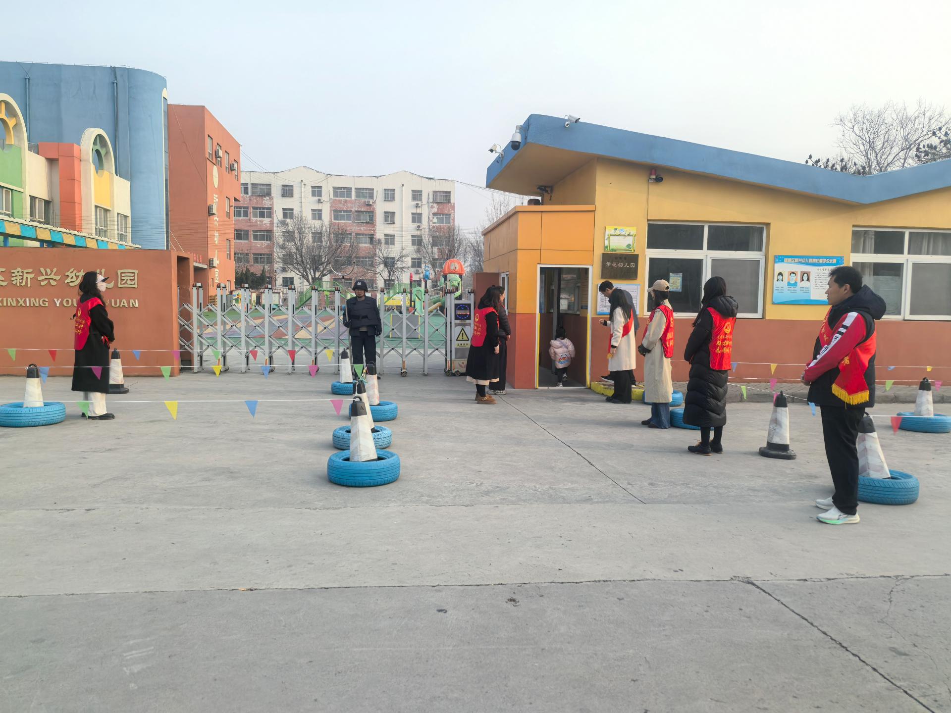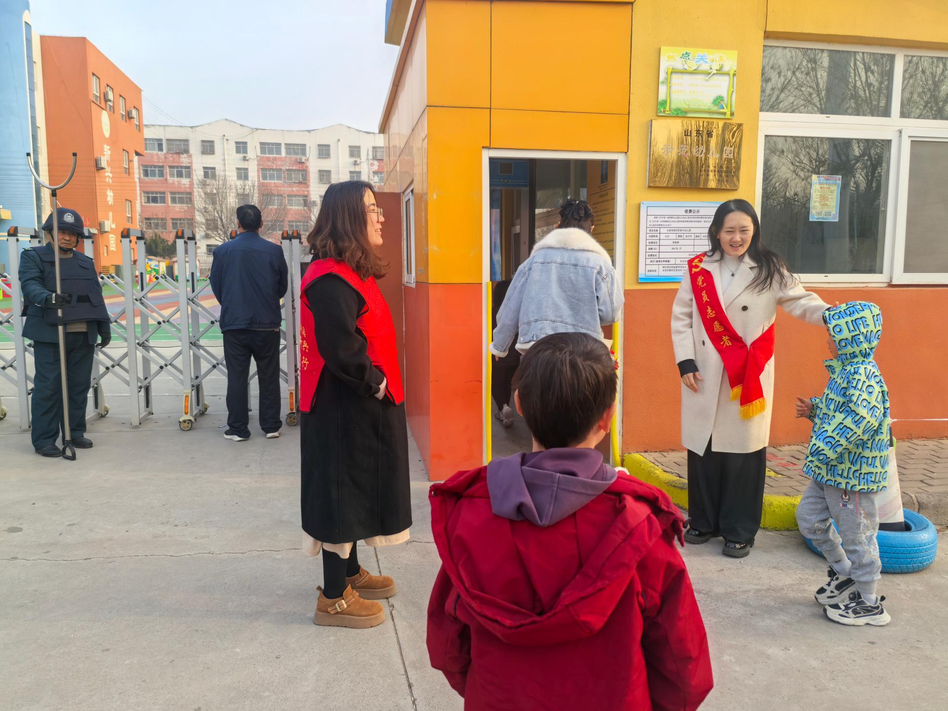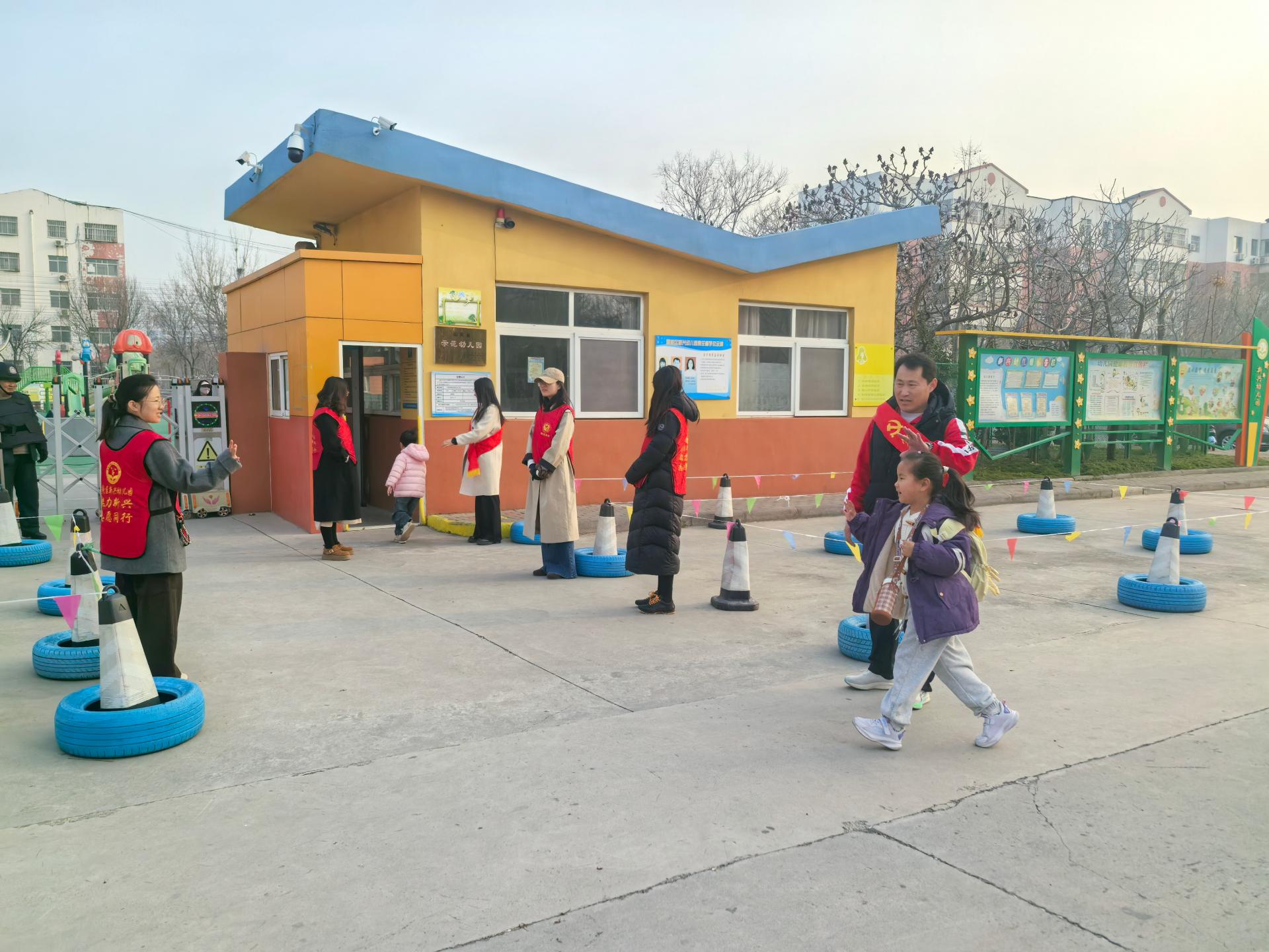 要求老师利用非上班时间开展志愿活动,负责早晨幼儿的入园安全。志愿者穿志愿服,有爱心耐心和细心,引导家长送完孩子快速离开。