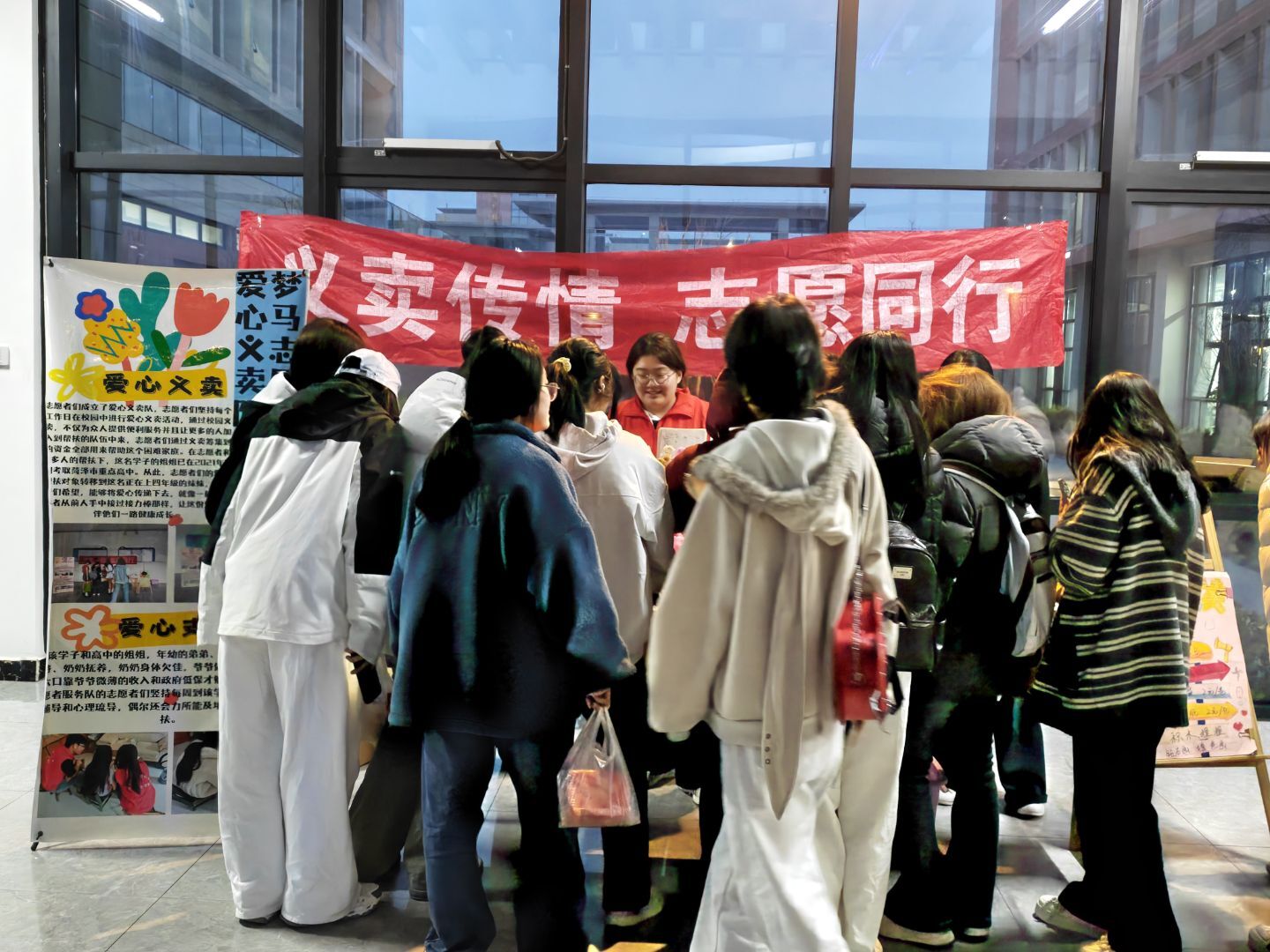 志愿者们成立了爱心义卖队,志愿者们坚持每个工作日在校园中进行爱心义卖活动,通过校园义卖,不仅为众人提供便利服务并且让更多的人加入到帮扶的队伍中来,志愿者们通过义卖筹集到的资金全部用来帮助这个困难家庭。在志愿者和众多人的帮扶下,这名学子的姐姐已在2025年顺利考取菏泽医学专科学校。从此,志愿者们的爱心帮扶对象转移到这名正在上初一的妹妹,志愿者们希望,能够将爱心传递下去,就像一届届志愿者从前人手中接过接力棒那样,让这份爱心陪伴他们一路健康成长。