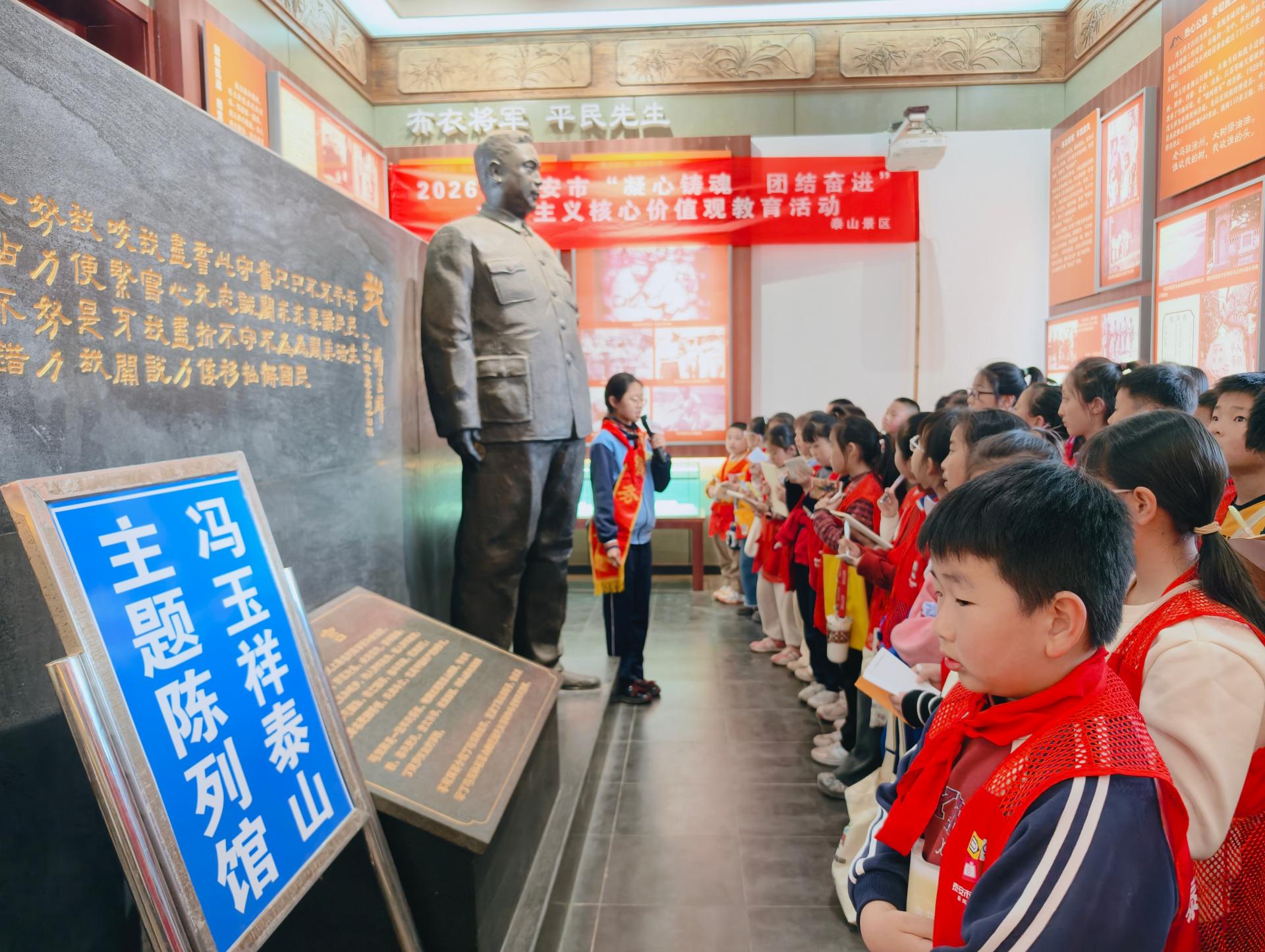 志愿者提前10分钟到泰山冯玉祥纪念馆做好讲解准备。听从带队老师安排,有序讲解。 沿途开展绿色环保和景区防火宣传。