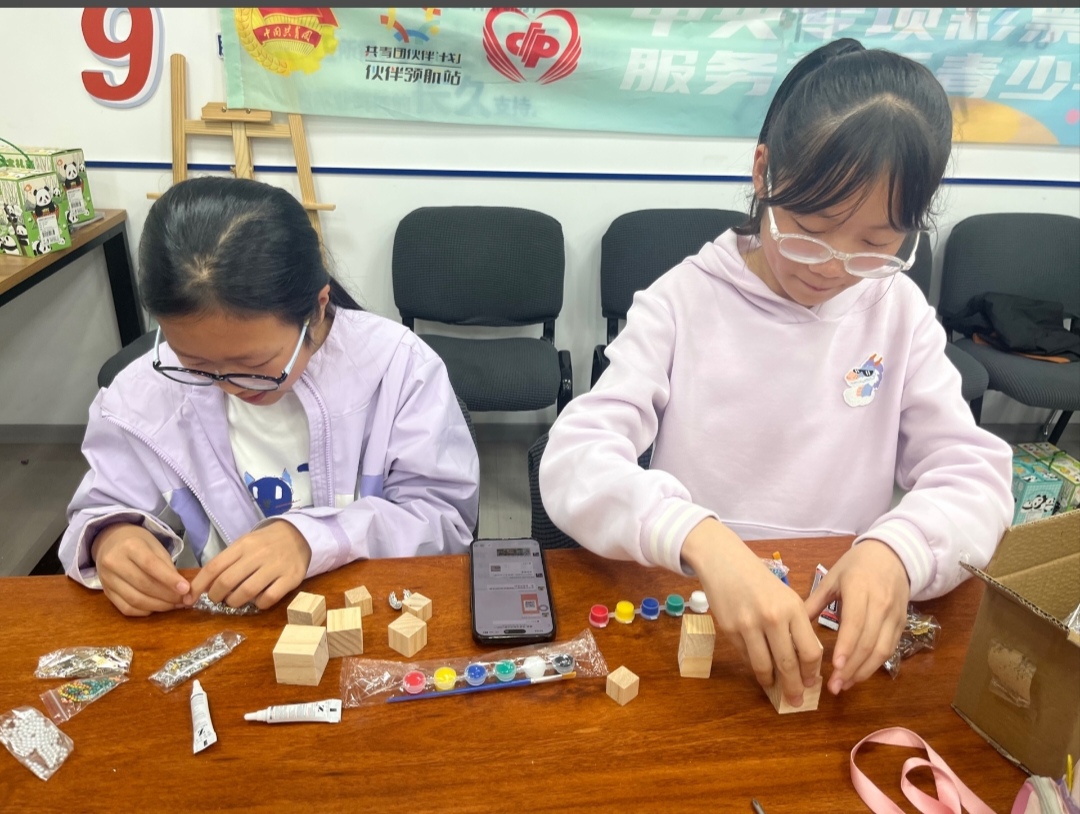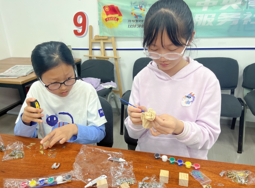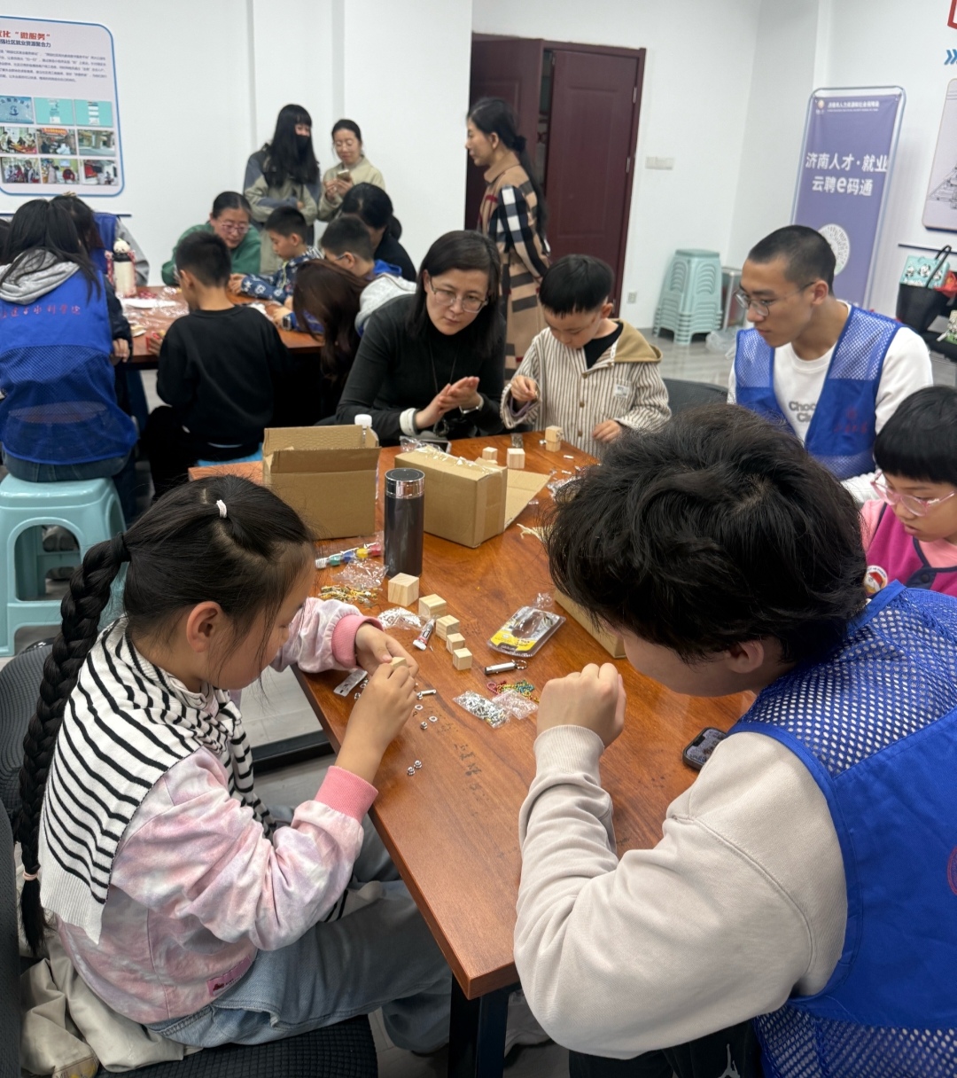 服务内容:融合助读一一 职责:关爱志愿者 活动内容:与舜园社区联合开展助残活动,带领残障人士学习科普知识、制作科技类手工,传递友情与温暖