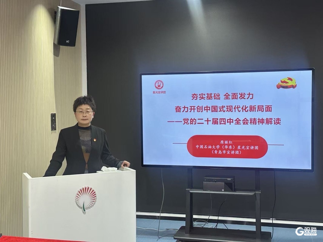 立足城乡群众生产生活广阔场景,创新宣讲方式、注重宣讲实效,是本次系列宣讲的重要特点。在西海岸新区新时代文明实践中心,中国石油大学(华东)马克思主义学院副教授原丽红面向高校大学生宣讲党的二十届四中全会精神。宣讲贴合青年实际,融入鲜活案例和详实数据,让在场观众深受启发。“我将把学习成果转化为成长成才、奋发进取的强劲动力,在奋进‘十五五’的新征程中展现青年担当、贡献青春力量。”青岛港湾职业技术学院社区康复专业2024级学生董明月说。
