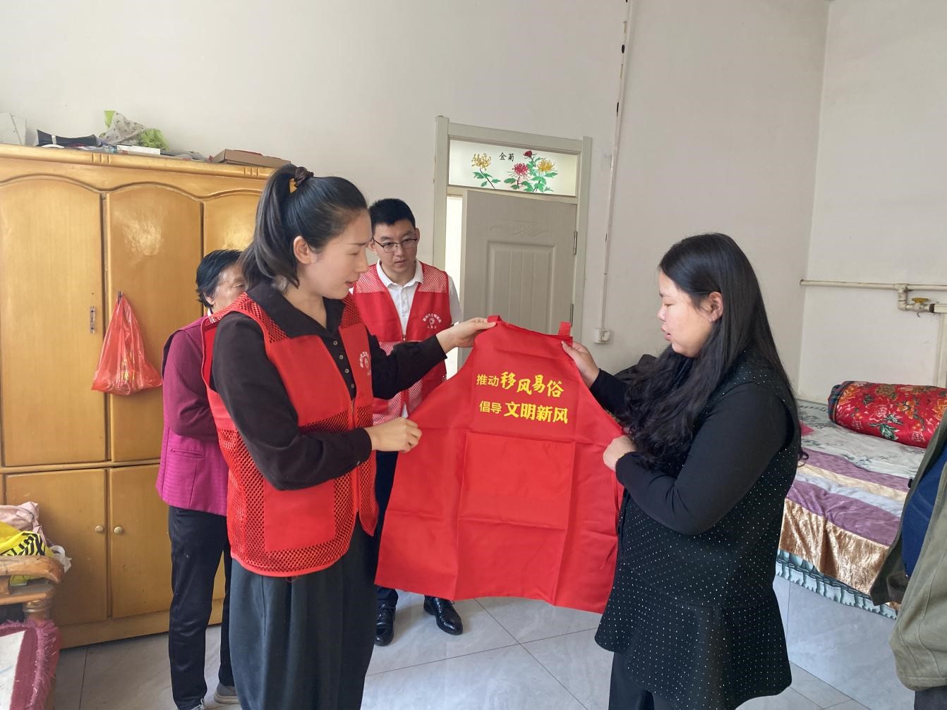 作为相衙镇移风易俗工作的生力军,“幸福帮帮团”整合了“五老”人员、镇村干部、志愿者等多方力量,聚焦群众反映强烈的高价彩礼、大操大办、恶俗婚闹等问题,创新推出“精准化摸排、定制化服务、常态化引导”工作模式,让移风易俗从“被动要求”变为“主动参与”。每月提前动态梳理辖区新婚台账,针对“十一”“五一”结婚高峰等关键节点,开展“新风入户”专项行动,为群众送上包含文明指南、新婚祝福的“幸福礼包”,用通俗易懂的语言解读政策、分享身边简办案例,引导新人树立“重感情、轻形式”的婚恋观。