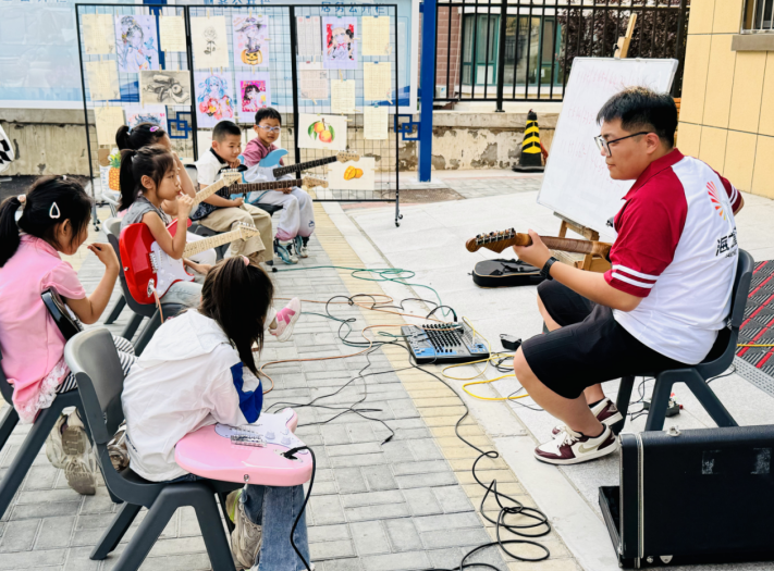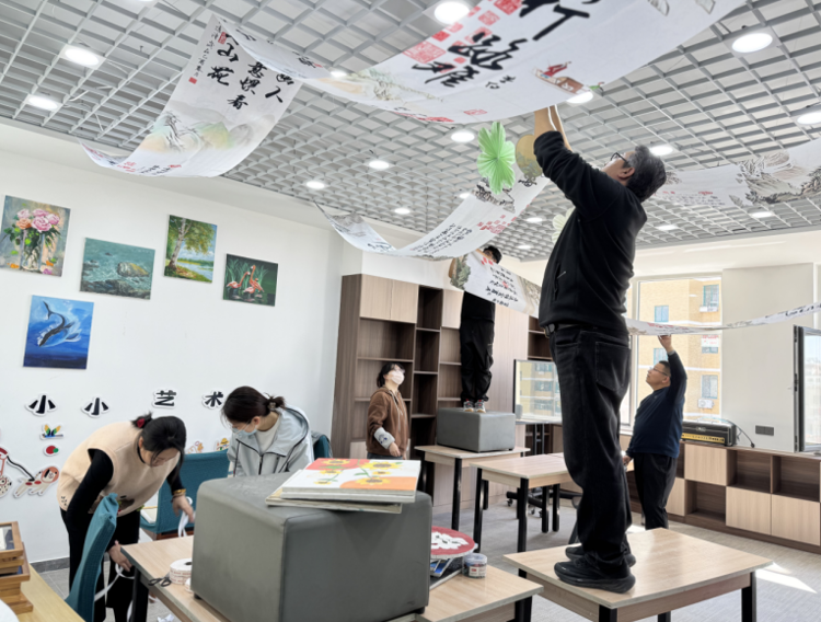 在金城社区的示范带动下,经开区推动各社区联动辖区商户合伙人,推出分层分类、精准适配的系列文化活动:针对儿童群体,联合教育类商户开设书法、美术、科普等公益课程,联合银行、消防站组织“小小银行家”“消防员体验”等职业启蒙活动,让孩子们的课余生活既充实又有趣;面向中老年居民,携手康养类商户定期开展义诊咨询、健康讲座、中医理疗等贴心服务,把健康文化送到“家门口”;围绕全年龄段居民需求,每月固定举办“万能维修日”“文化市集”,提供免费维修、非遗展示、文创交易等多样化服务,让文化真正融入日常生活的方方面面。与此同时,经开区还鼓励商户合伙人主动“认领”社区文化阵地,深度参与社区文化书院、楼道画廊、共享书房等空间的打造与运营。例如,海之瞳美术学校先后认领了金城社区的书画室打造,还组织学校师生在社区周边绘制彩绘,既美化了社区环境,又让艺术基因融入社区肌理,正是通过引导商户结合自身优势参与阵地建设,打造“一空间一主题”的特色文化场景,让社区的每一个角落都成为潜移默化的“文化课堂”。