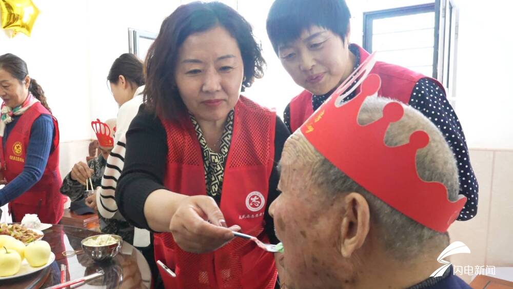 成武县志愿者协会志愿者贾玉萍告诉记者:“为他们包水饺,准备了蛋糕。然后帮助老人理理发,给老人打扫一下卫生,跟老人聊天,陪老人,进行亲情陪护。”