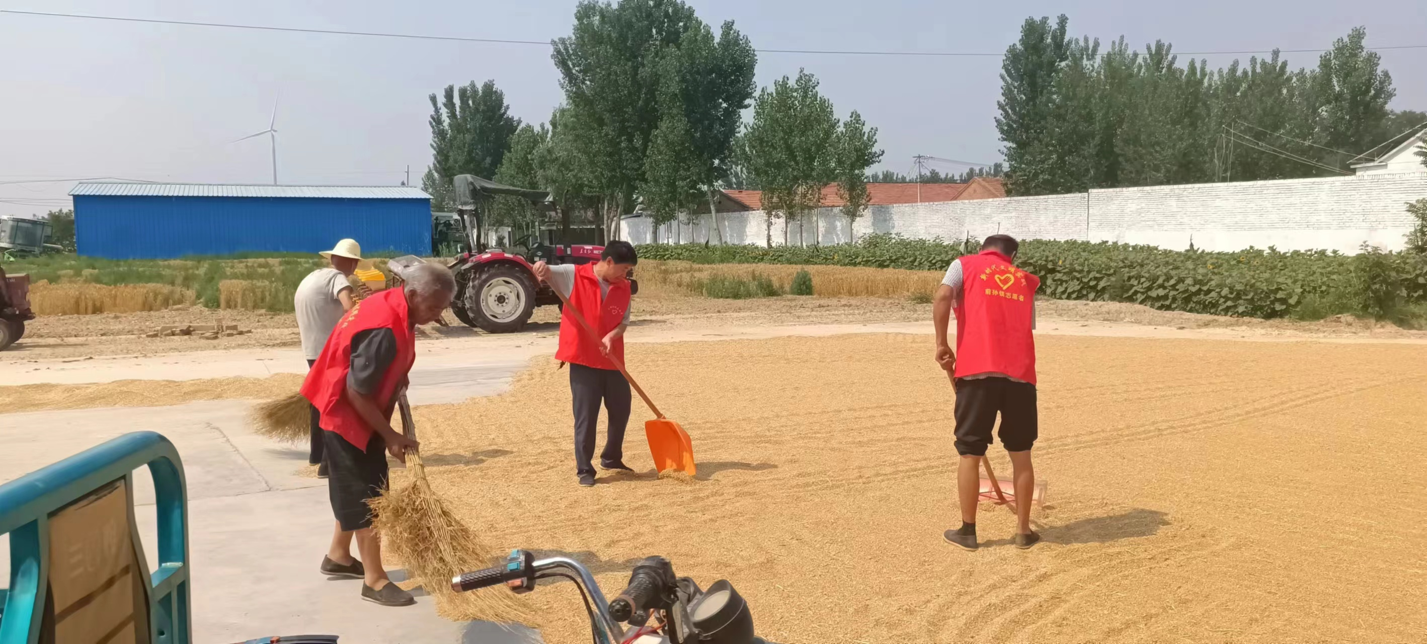 于集乡党委副书记刘波介绍说,麦收期间,于集乡成立了64支志愿服务队,开放128处镇村公共场所,为有困难的群众提供收割、晾晒、播种、灌溉等服务,竭尽全力保障群众的三夏生产。