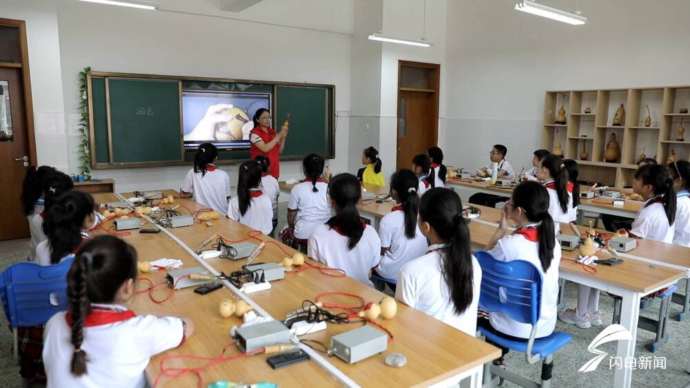 在鱼台县实验小学,姚辉正在教孩子们学习葫芦烙画。姚辉不仅是一名美术老师,也是当地的一名注册志愿者。她不仅在学校开设了葫芦社团,也会定期到当地的市民中心和图书馆进行烙画的公益讲座。她希望通过自己的努力,让更多孩子了解葫芦烙画、爱上葫芦烙画,传承葫芦烙画。